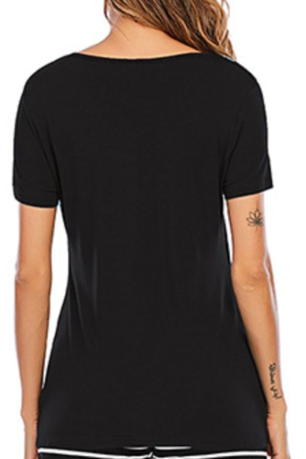 Pocketed Short Sleeve Top and Striped Pants Lounge Set