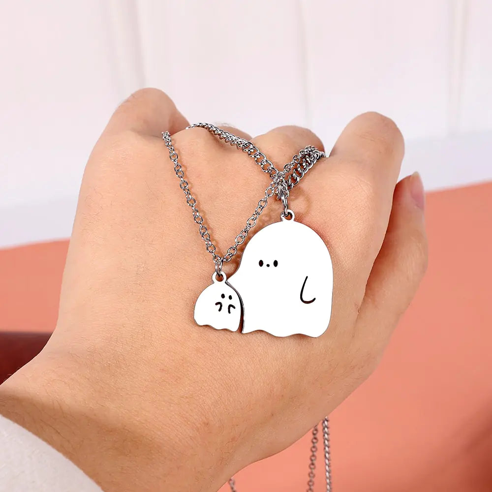 Introducing our Cute Ghost Little Monster Necklace – a whimsical symbol of love and camaraderie. This necklace set is tailor-made for couples, friends, or anyone seeking an endearing pendant charm. Meticulously crafted, it boasts a delightful design featuring a charming ghost and a lovable little monster, sure to capture hearts wherever you go. Whether it's to express affection on Valentine's Day or to celebrate a cherished friendship, this pendant charm is the epitome of style and sentiment. The clavicle chain adds a hint of hip-hop flair, catering to both men and women with an eye for unique jewelry. Elevate your accessory game with our Cute Ghost Little Monster Necklace and showcase the bond of love or friendship with flair. Let it serve as a constant reminder of your special connection, adding a playful yet stylish touch to any ensemble.