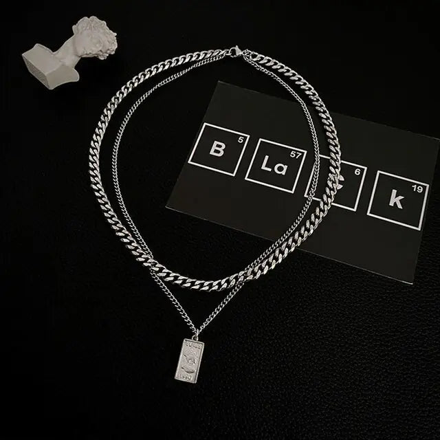 Introducing our Fashion Eros Venus Double Layer Cuban Chain Pendant Necklace - a striking statement piece crafted from high-quality stainless steel, designed for men who embrace bold and fashionable jewelry trends! This unique necklace features a double-layered design, with a stylish Cuban chain and a captivating pendant that exudes charm and sophistication. The stainless steel construction ensures both durability and a sleek, polished finish that will retain its luster over time.