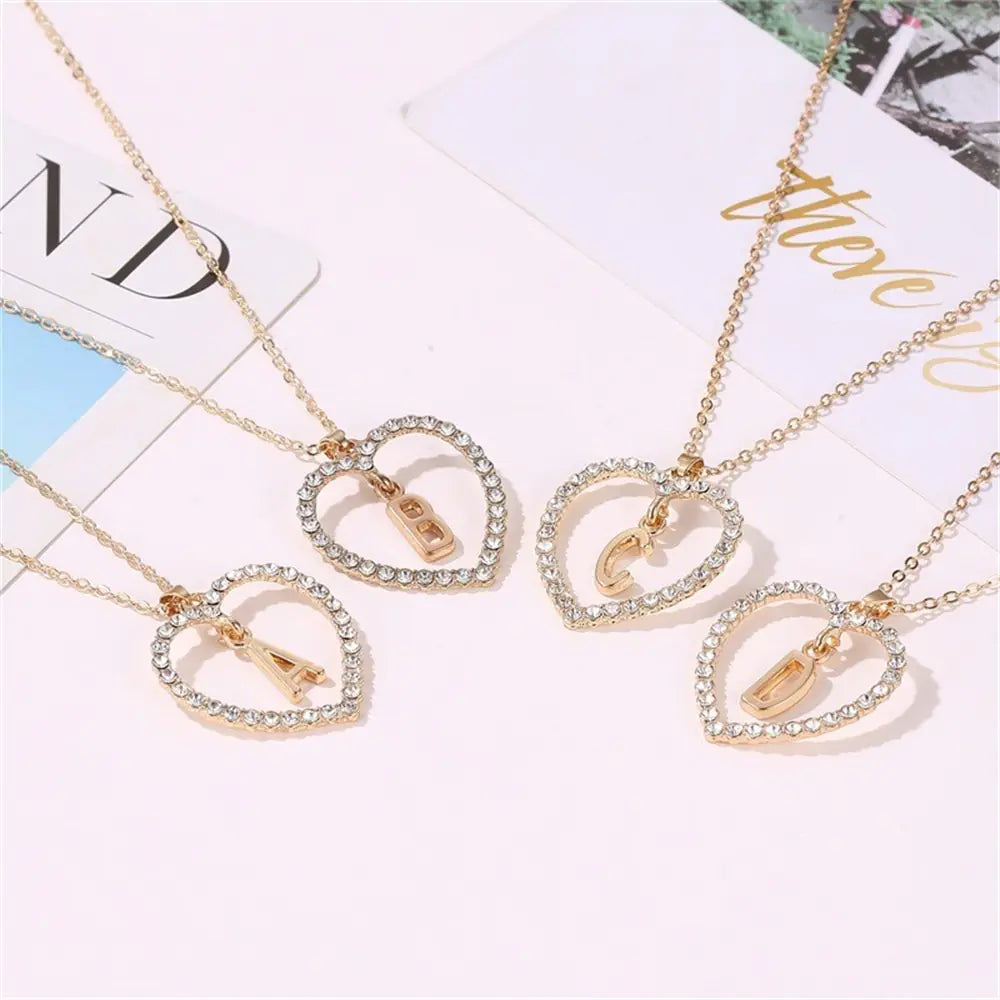 Elevate your style with our Fashion 26 Letter Necklace featuring a Rhinestone Heart Pendant. This Initials Necklace combines chic design with a touch of personalization, making it the perfect accessory for your clavicle chain collection. Whether it's a special occasion or a simple statement of elegance, this necklace offers a stylish way to showcase your initials. Adorned with sparkling rhinestones and a delicate heart charm, it adds a touch of glamour to your outfit. Ideal for confessions, birthdays, or as a heartfelt gift, this jewelry piece celebrates both fashion and sentiment in one exquisite package.
